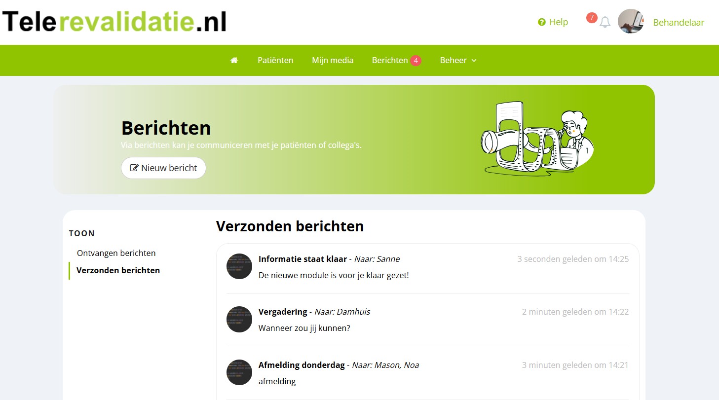 Klik vanuit het R-EPD direct door naar Telerevalidatie.nl en zet direct nieuwe inhoud klaar voor je patiënt. Ook ontvang je updates binnen het R-EPD over de voortgang van de patiënt.