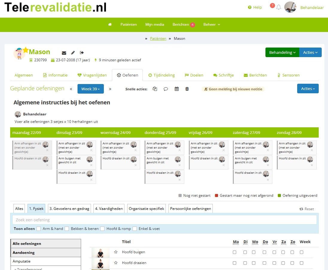 Zet fysieke oefeningen klaar, monitor de voortgang van uw patiënt en stuur bij wanneer nodig.