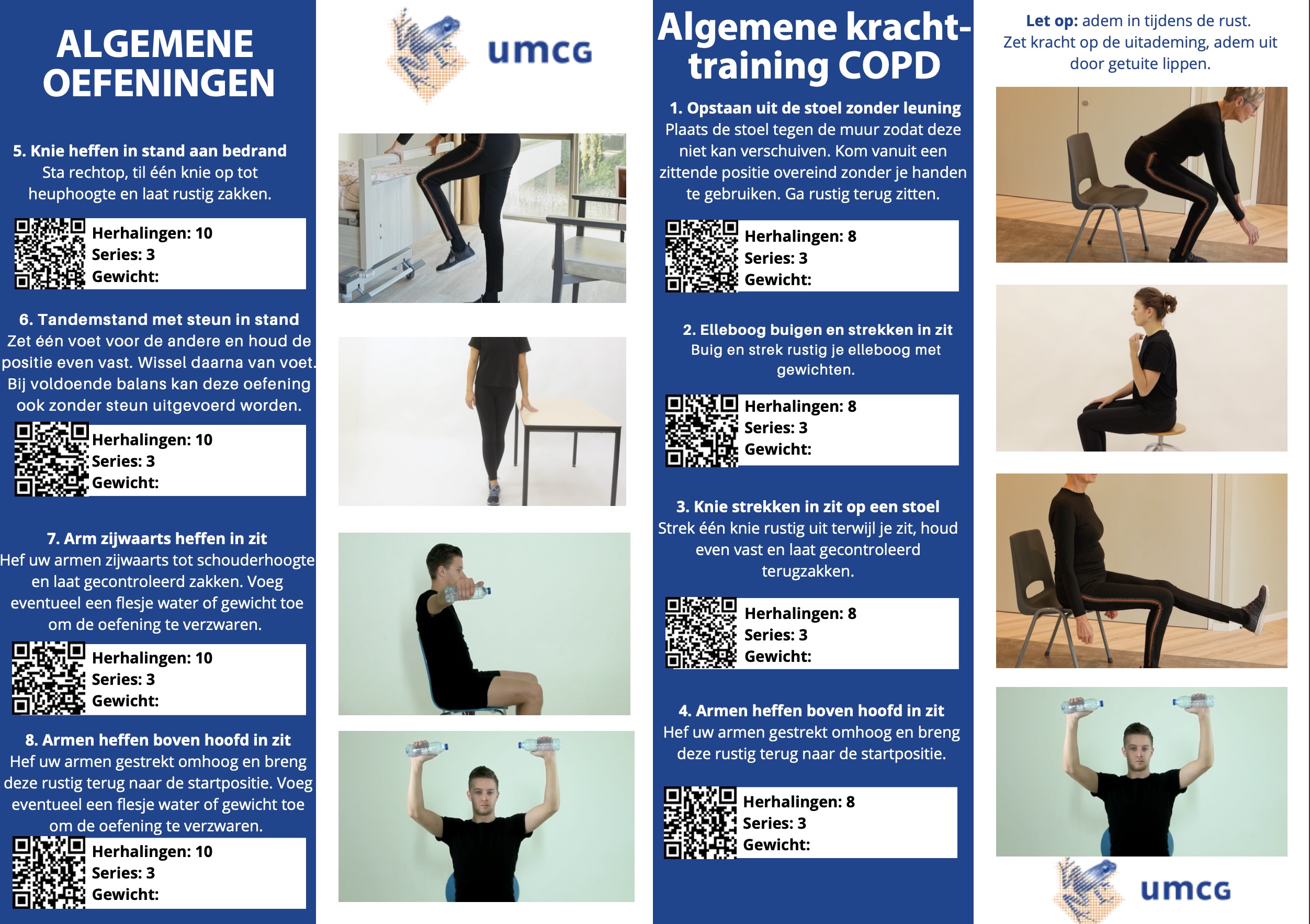 Noortje FischerVoor het UMCG heeft Telerevalidatie.nl onlangs oefenflyers ontwikkeld die patiënten ondersteunen bij het uitvoeren van algemene kracht- en beweegoefeningen. Deze flyers combineren duidelijke instructies met een praktisch invul format, zodat zowel zorgprofessionals als patiënten grip houden op het trainingsproces. De schema’s zijn geschikt voor fysiek gebruik op papier, maar kunnen ook digitaal gedeeld en ingevuld worden. Kortom, ideaal voor hybride zorgtrajecten.